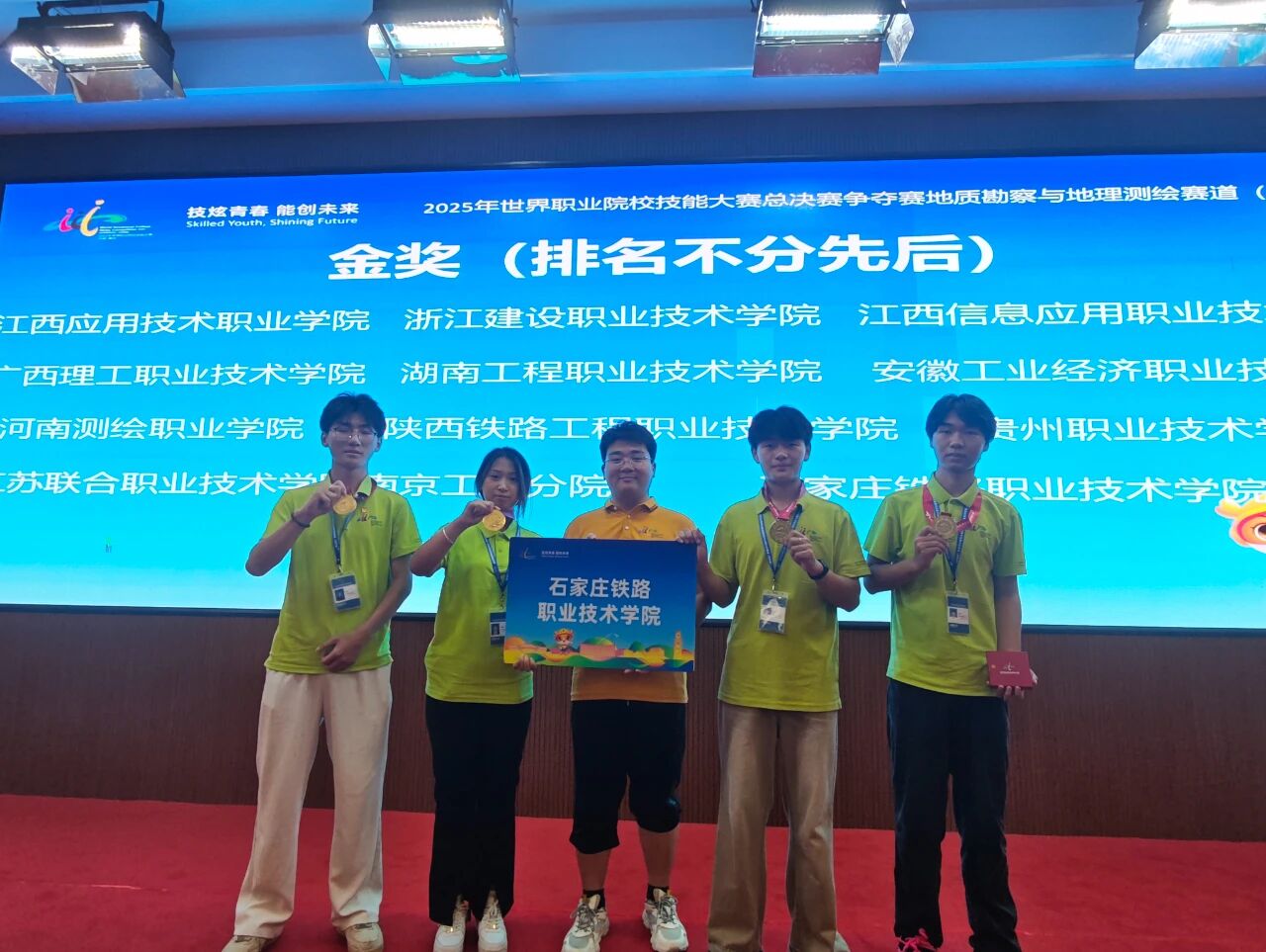 2025年8月25日至30日,世界職業(yè)院校技能大賽總決賽地質(zhì)勘察與地理測繪賽道(高職組)爭奪賽在江西應(yīng)用技術(shù)職業(yè)學院成功舉行。經(jīng)過激烈角逐,石鐵院測繪工程系王政、信蘇哲、竇甜甜、張旭闊四位同學組成的參